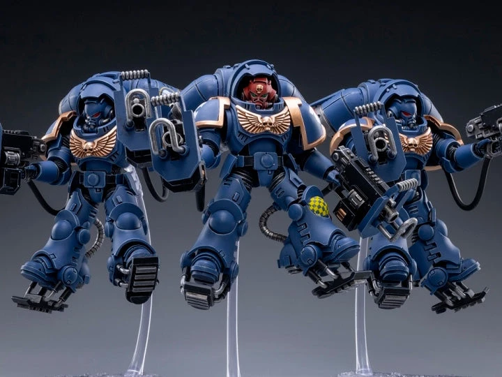 Joy Toy brings the Inceptros to life with this set of Warhammer 40K Ultramarines Primaris Inceptors box of 3 figures. The Ultramarines are the most elite of the Space Marine Chapters in the Imperium of Man. Recreate the most important battles with this set of highly disciplined and courageous warriors.